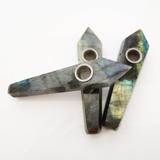 High Quality Earth Mined Natural Gemstone Polished Crystal Smoking Pipes w Lotus Blue Flower Link