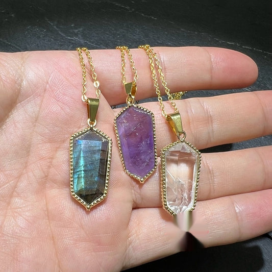 Natural Amethyst Crystal Agate Pendant Rough Stone Gemstone Necklace