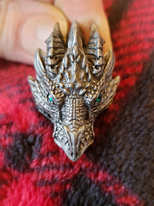 Silver DRAGON Head Metal Pendant w 22 inch silvery chain Detailed nice viking gift