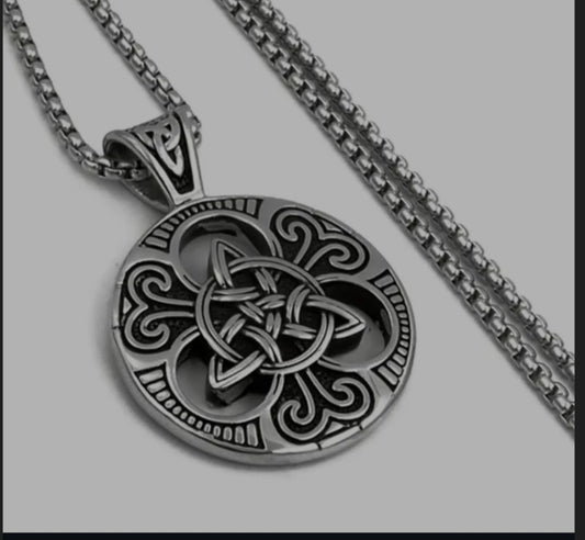 Viking Triquerta Knot Celtic Pendant w Chain , silver or two tone avail