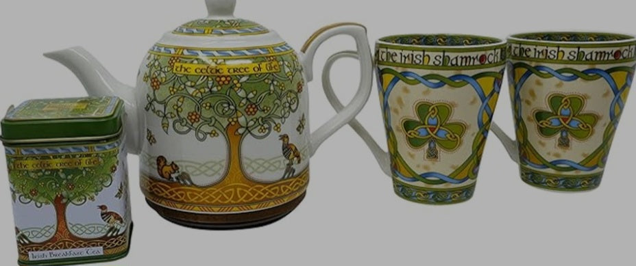 ■TREE OF LIFE TEA SET: Contains 1 Tree of Life Teapot, 1 Irish Breakfast Loose Leaf Tea and 2 IRISH SHAMROCK 🍀 MUGS