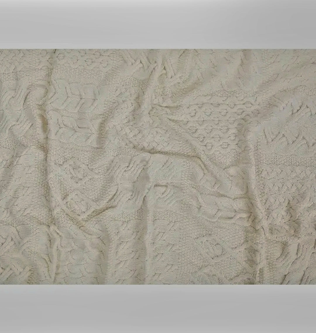 Stunning Thick Heavy Patchwork Super Soft 100% Merino Wool Knit Throw 42" x 64" Natural Color