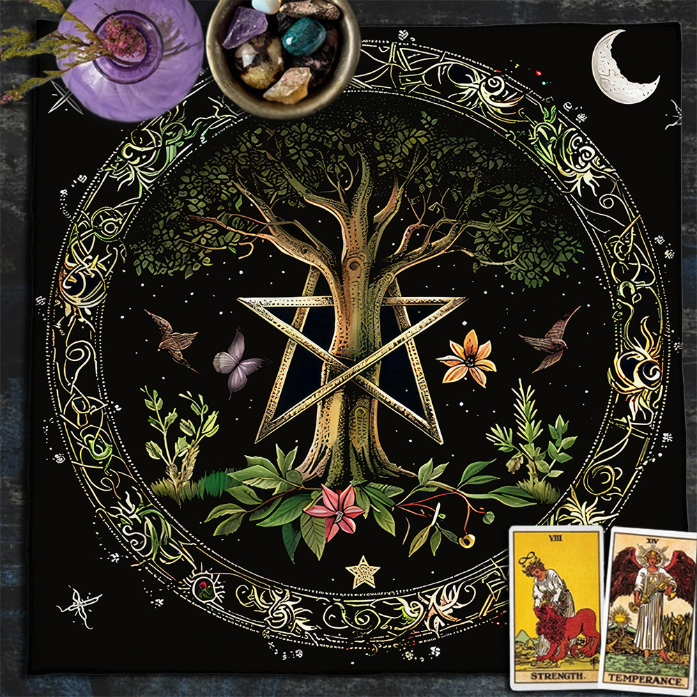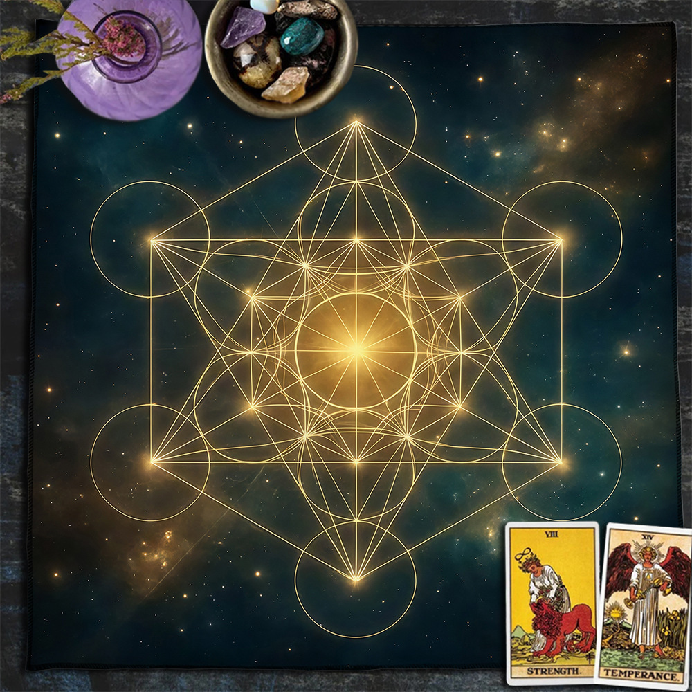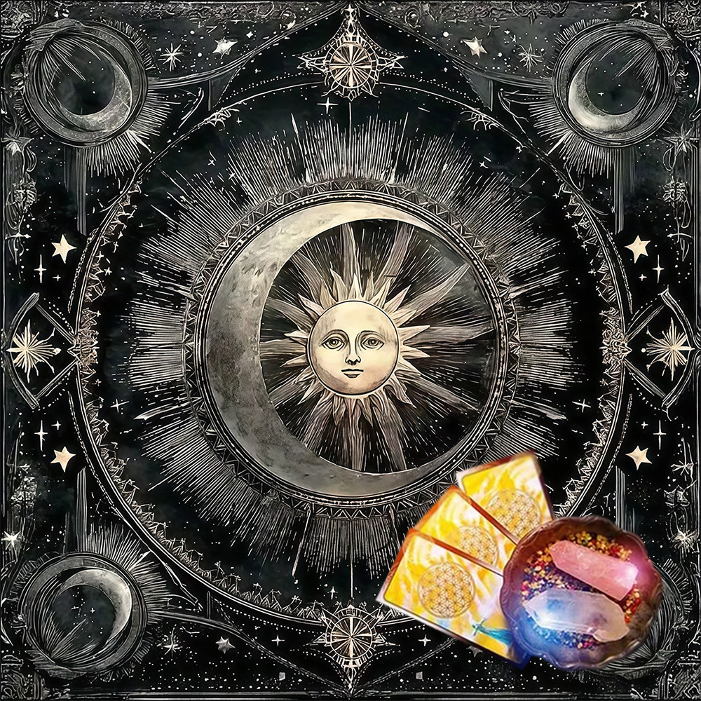 Geometric Tarot Moon Sun Velvet Tablecloth