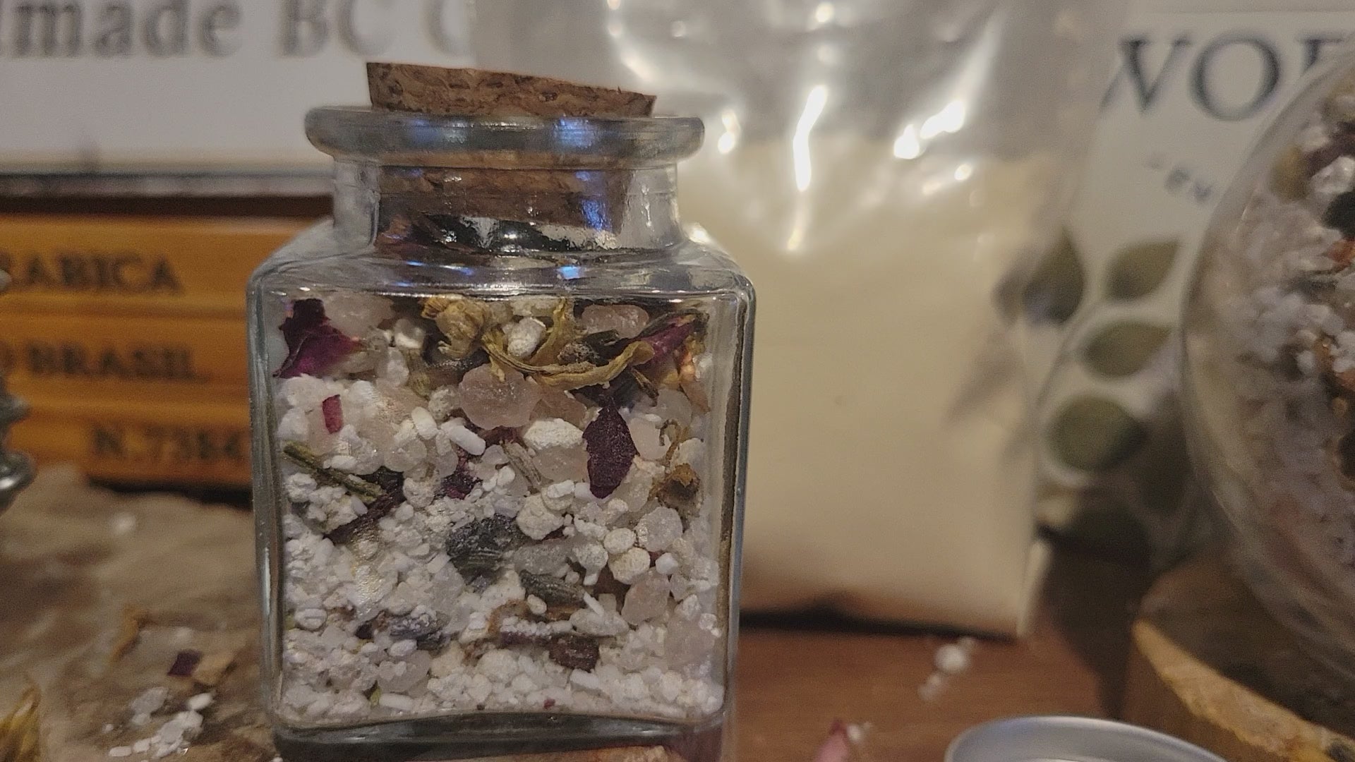 Epsom Salt, Himalayan Pink Salt, Celtic Sea Salt,  European Spa Salts Sodium Bicarbonate, Colloidal Oatmeal Powder, Raw Honey Powder Botanical Flowers, Essential Oils of choice