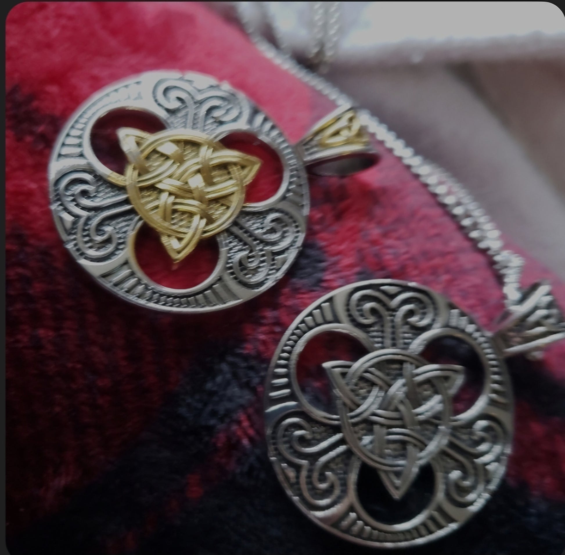 Viking Triquerta Knot Celtic Pendant w Chain , silver or two tone avail