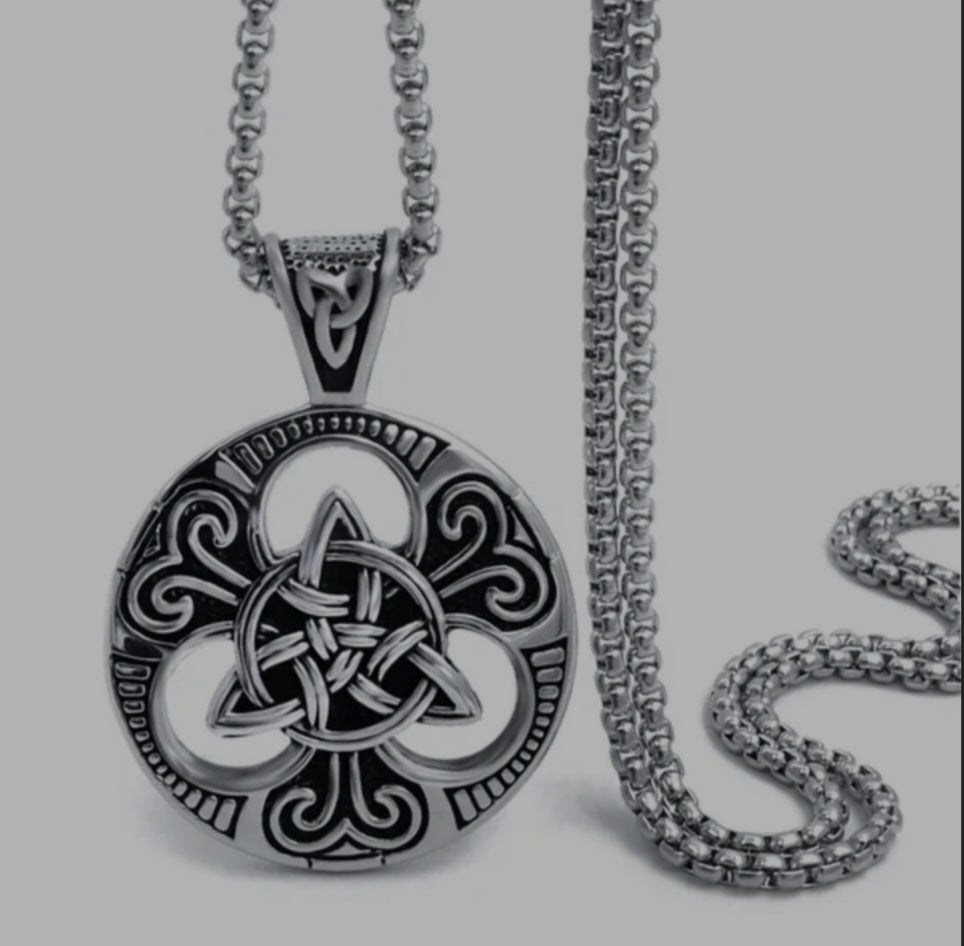 Intricate Knotwork Triquetra w silvery 22inch chain!
